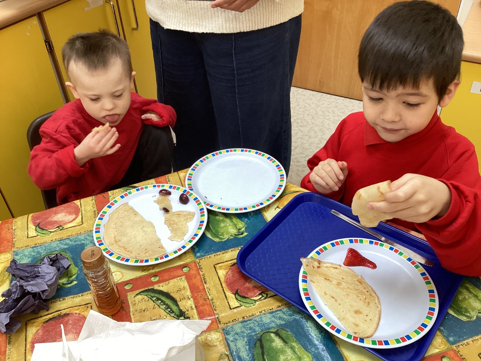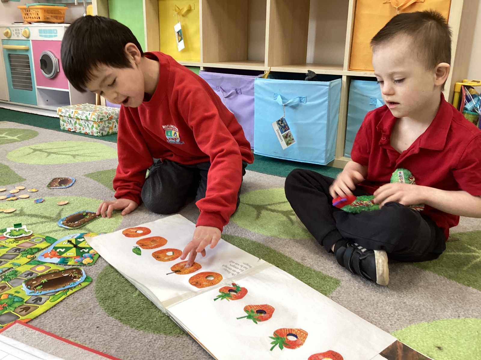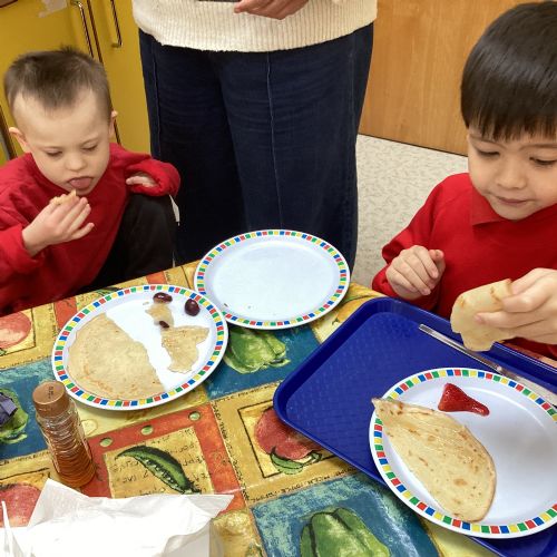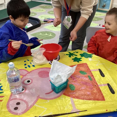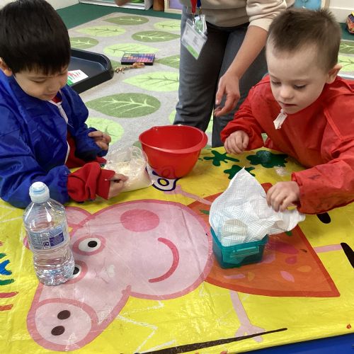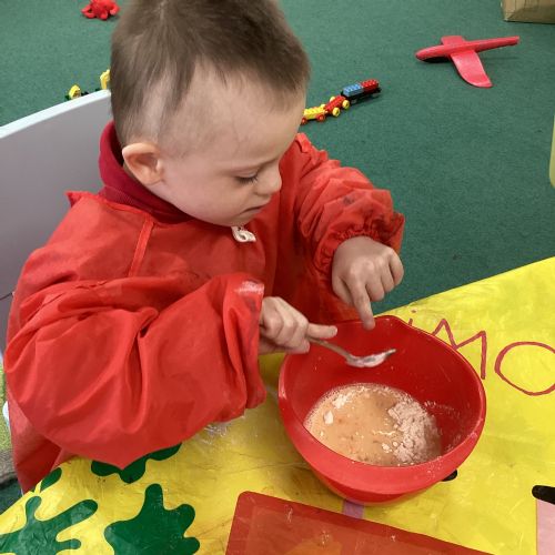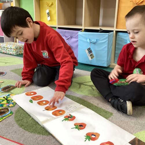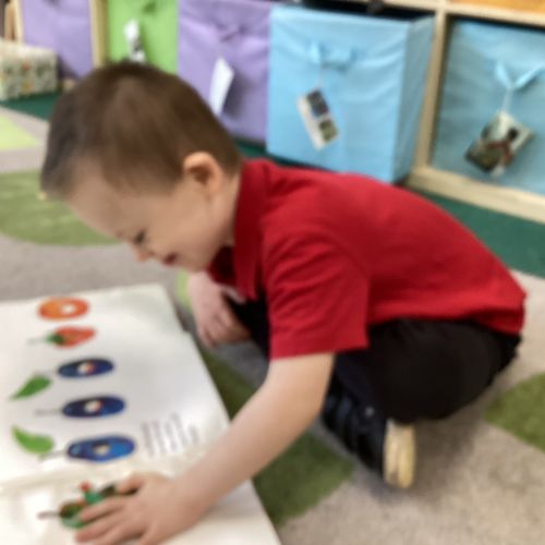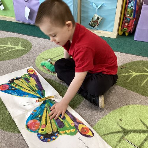 This term we are enjoying listening to 'The Hungry Caterpillar' and engaging in activities around the story as well as making pancakes, making cards for those we love and simply enjoying each other's company!